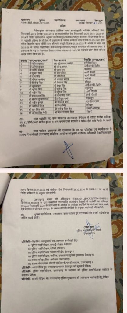 देहरादून: पुलिस मुख्यालय ने पीएसी के 16 उप निरीक्षक/यातायात/प्लाटून कमांडर को तत्काल प्रभाव से दलनायक के पद पर पद्दोन्नति दे दी है। पुलिस महानिदेशक दीपम सेठ ने पद्दोन्नत हुए दलनायकों को बधाई दी है। पुलिस महानिरीक्षक पीएसी नीरू गर्ग की ओर से पद्दोन्नति के आदेश जारी किए। एसएसपी देहरादून अजय सिंह ने देहरादून जिले के पदोन्नत अधिकारियों भूपेन्द्र सिंह गुसांई व संजीव कुमार शर्मा को बधाई देते उन्हें निरीक्षक/दलनायक पद के अलंकरण से अलंकृत किया।