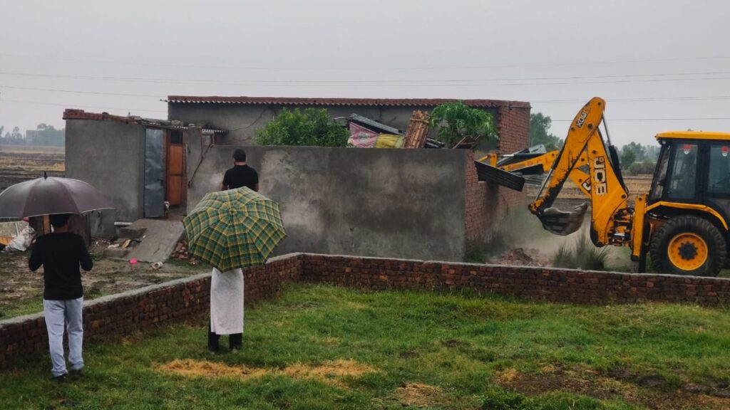 उधमसिंगनगर: नानकमत्ता की रहने वाली पूजा का सिर धड़ से अलग करने वाले मुश्ताक अहमद के पिता के घर पर सोमवार तड़के बुलडोजर चल गया। एसएसपी उधमसिंगनगर मणिकांत मिश्रा व डीएम नितिन भदौरिया के निर्देश पर टीम ने संयुक्त कार्रवाई की। उधमसिंगनगर मे पुलिस व प्रशासन की ओर से अवैध कब्जों के ध्वस्तीकरण की कार्रवाई लगातार जारी है। सोमवार तड़के संयुक्त टीम ने एसटी वर्ग की जमीन पर बनाए गए हत्यारोपी मुश्ताक अहमद के पिता अली अहमद के मकान को ध्वस्त कर दिया।