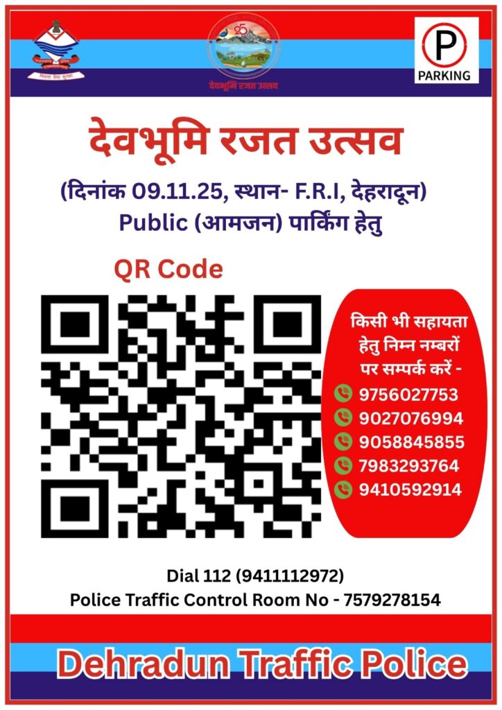 — पार्किंग / डायवर्जन / रूट संबंधी जानकारी – जितेन्द्र जोशी, निरीक्षक यातायात देहरादून- 9760616353