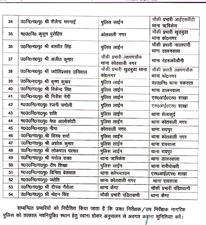 देहरादून: देहरादून में कानून-व्यवस्था को और अधिक सुदृढ़ बनाने के उद्देश्य से पुलिस महकमे में बड़े स्तर पर तबादले किए गए हैं। एसएसपी परमेन्द्र डोबाल ने एक झटके में 50 से अधिक थाना-चौकी प्रभारियों को बदला है।