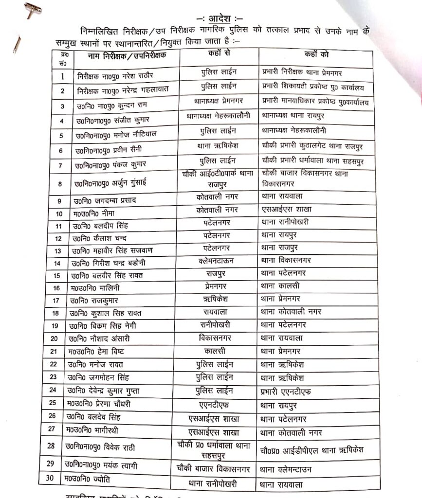 एसएसपी ने किए थानाध्यक्ष व चौकी प्रभारियों के तबादले, देखें सूची