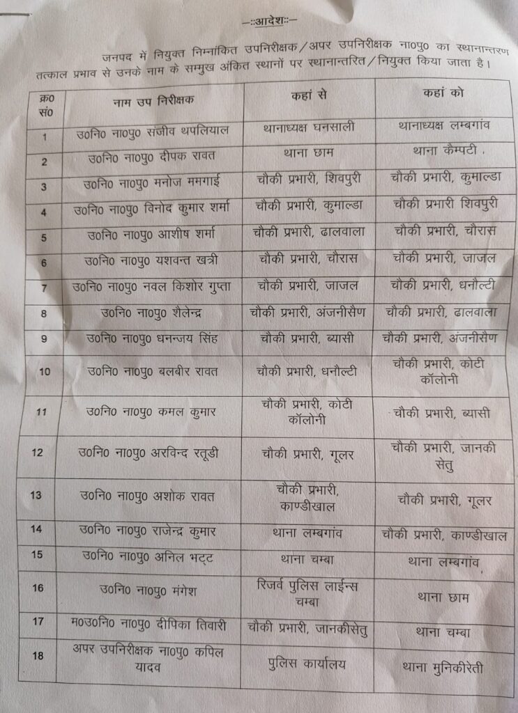पुलिस मुख्यालय ने किए 78 इंस्पेक्टरों के तबादले, कई थानाध्यक्ष भी हटेंगे