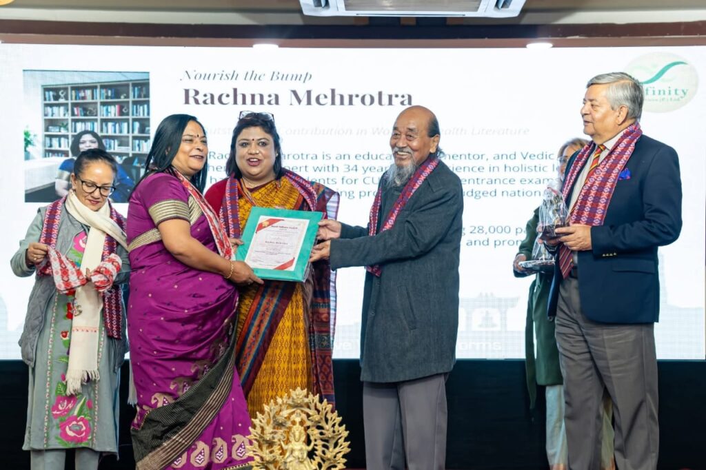 देहरादून: प्रख्यात शिक्षिका, लेखिका एवं करियर काउंसलर *रचना मेहरोत्रा* को पड़ोसी देश नेपाल की राजधानी *काठमांडू* में आयोजित *‘नेपाल ऑथर्स अवॉर्ड – 2025’* समारोह में *“आउटस्टैंडिंग वुमन इन हेल्थ लिटरेचर ऑथर अवॉर्ड”* से सम्मानित किया गया। यह सम्मान उन्हें उनकी पुस्तक *‘Nourish the Bump’* के लिए प्रदान किया गया, जो गर्भावस्था के प्रारंभिक तीन महीनों में महिलाओं के शारीरिक और मानसिक स्वास्थ्य की देखभाल पर आधारित एक मार्गदर्शक पुस्तक है। इसमें गर्भवती महिलाओं के लिए संतुलित आहार एवं स्वास्थ्यवर्धक व्यंजनों की विशेष विधियाँ भी सम्मिलित हैं।