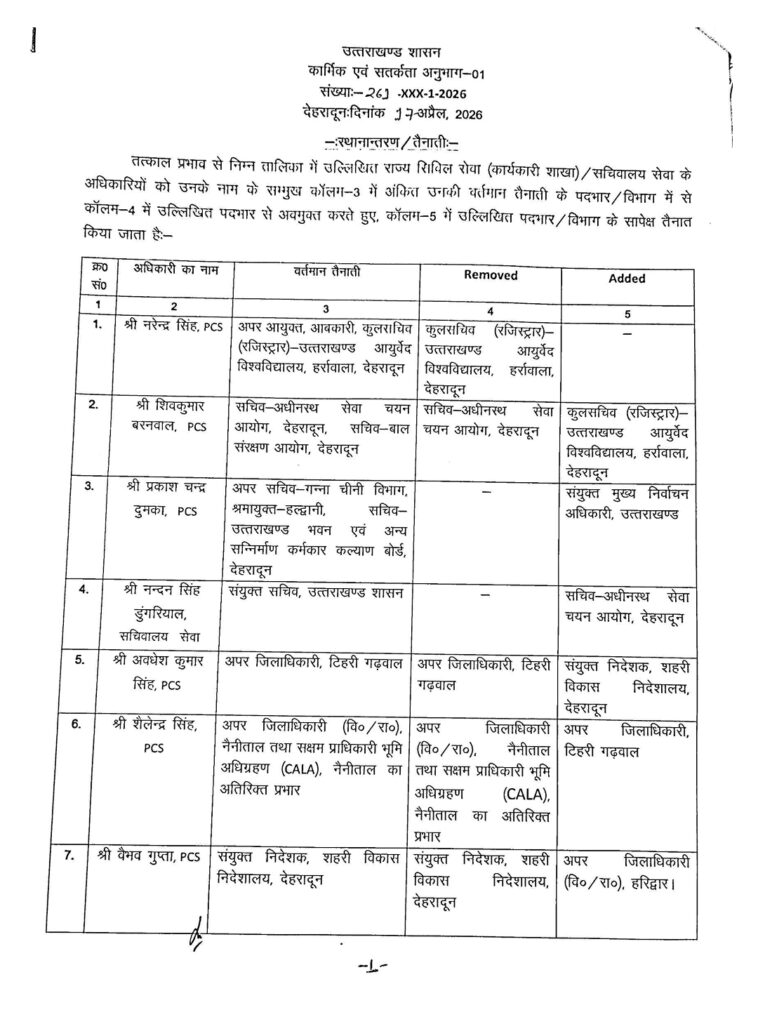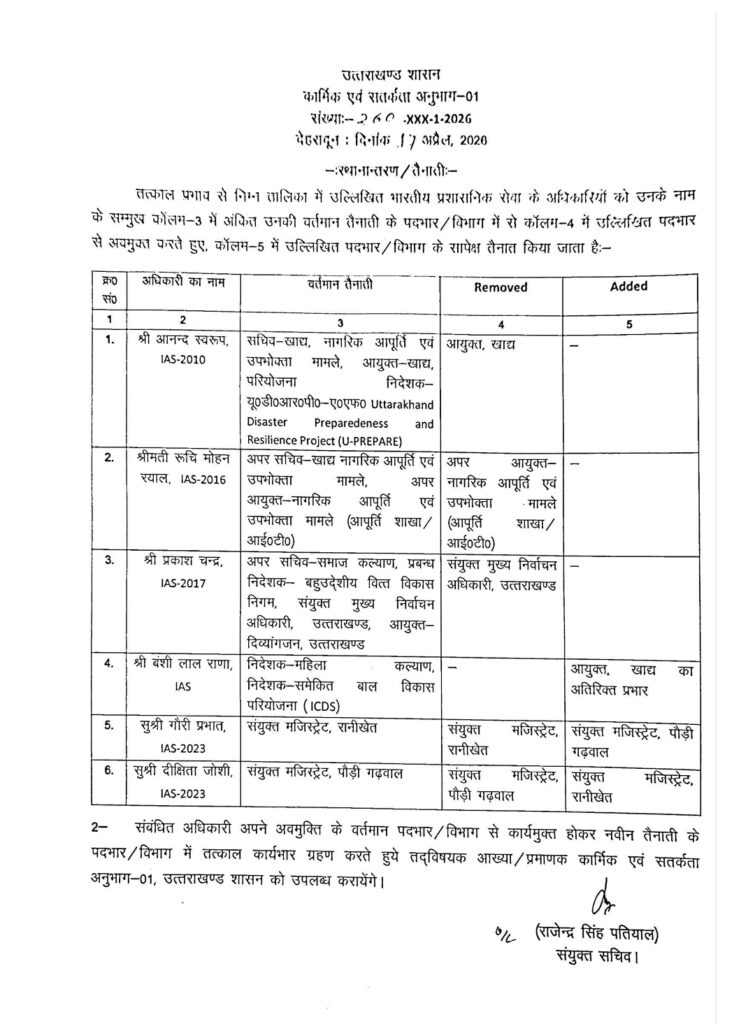 शासन ने किए 06 IAS व 26 PCS अधिकारियों के तबादले, देखें सूची