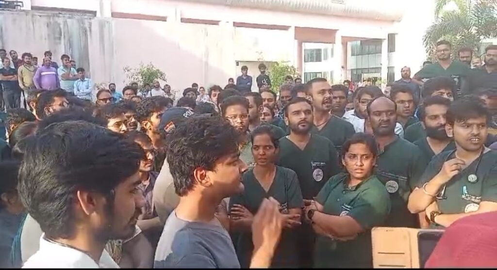 DEHRADUN: लंबे समय से ऋषिकेश एम्स अपनी कार्यप्रणाली के कारण चर्चा में बना हुआ है। अब एक गंभीर मामले में ऋषिकेश एम्स की छवि धूमिल हुई है। यहां एक महिला चिकित्सक ने नर्सिंग अधिकारी पर छेड़खानी का आरोप लगाया है। इस घटना के बाद एम्स के चिकित्सकों ने डीन कार्यालय के घेराव करते हुए जमकर विरोध प्रदर्शन किया। जिसके बाद ऋषिकेश पुलिस अस्पताल में पहुंची और नर्सिंग अधिकारी को गिरफ्तार किया गया।