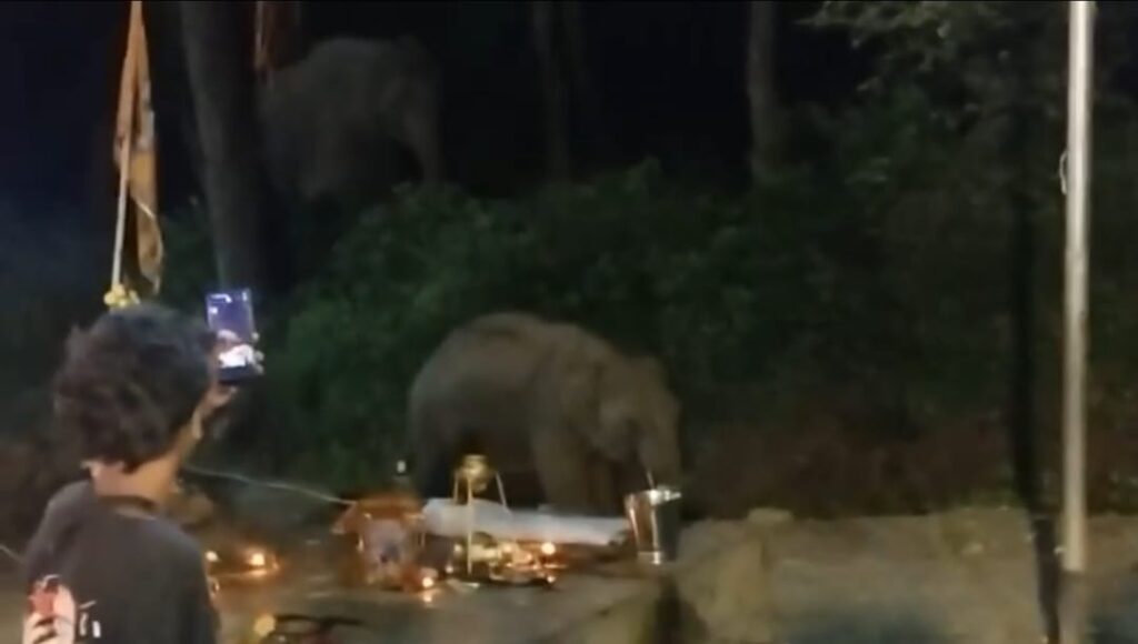 शनिवार रात्रि कुछ कांवड़ यात्रियों ने मणिमाई मंदिर के निकट भंडारा लगाया था। इसी दौरान एक नर व मादा हाथी अपने शिशु के साथ मंदिर के पीछे जंगल से सड़क पार करने के लिए जंगल के किनारे पहुंचे थे। तभी वहां चल रहे कांवड़ियों के भंडारे में तेज आवाज साउंड सिस्टम व लोगों के शोर हल्ला मचाने के चलते हाथी क्रोधित होकर चिंघाड़ने लगे। वही कांवड़ यात्री हाथियों को चिढ़ाते हुए उनकी वीडियो बनाने लगे। जिस पर हाथी ने क्रोधीत होकर वहां खड़ी कांवड़ियों की ट्रालियों को पलट दिया। इससे पंडाल में मौजूद कावड़ियों मे भगदड़ मच गई।